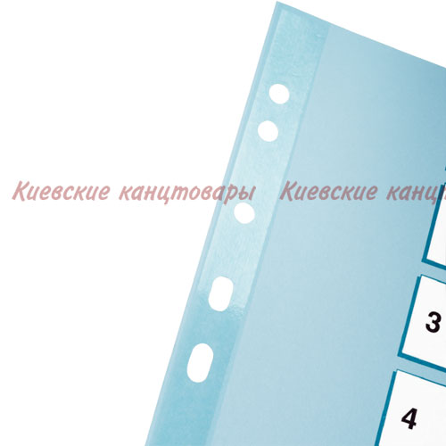 Прочные разделители в ярких цветовых сочетаниях. Большое поле на титульном листе для записи сведений о содержании рубрик.